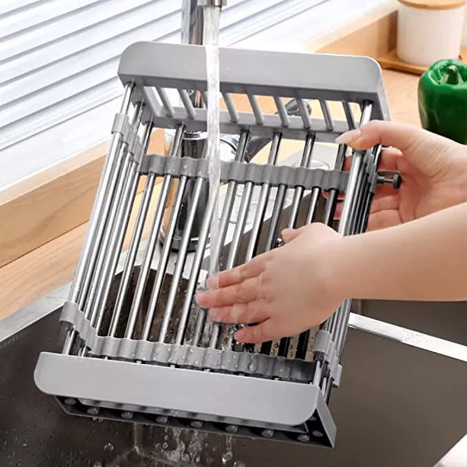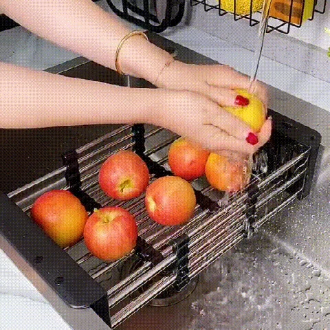 The sink drainage shelf can drain dishes or rinse vegetables and fruits. It can contain several cups and dishes at the same time. After cleaning, vegetables and fruits can also be put at the top to drain the water, comfortable to use.